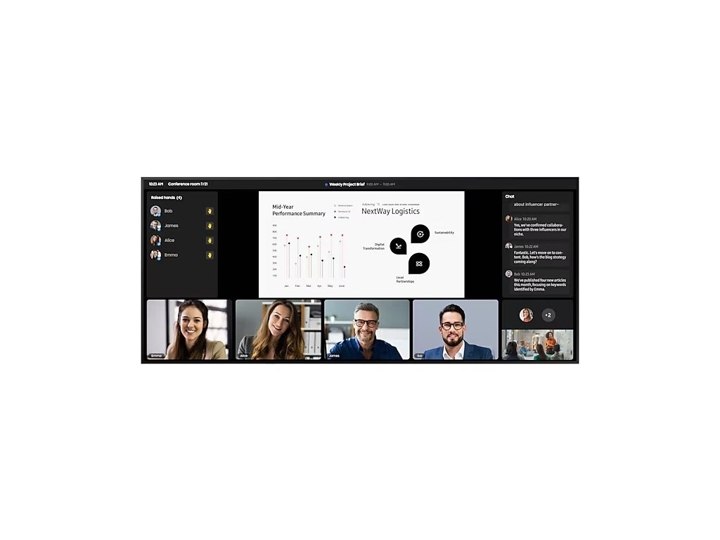 Tento monitor s poměrem stran 21:9 je navržený tak, aby zapadl do moderních pracovních prostředí a proměnil je ve špičková konferenční místa. Ať už jsou účastníci přítomni osobně nebo vzdáleně, monitor zajišťuje jejich odpovídající zapojení do děje a poskytuje skutečně pohlcující prostředí, rozvíjející vzájemnou spolupráci.