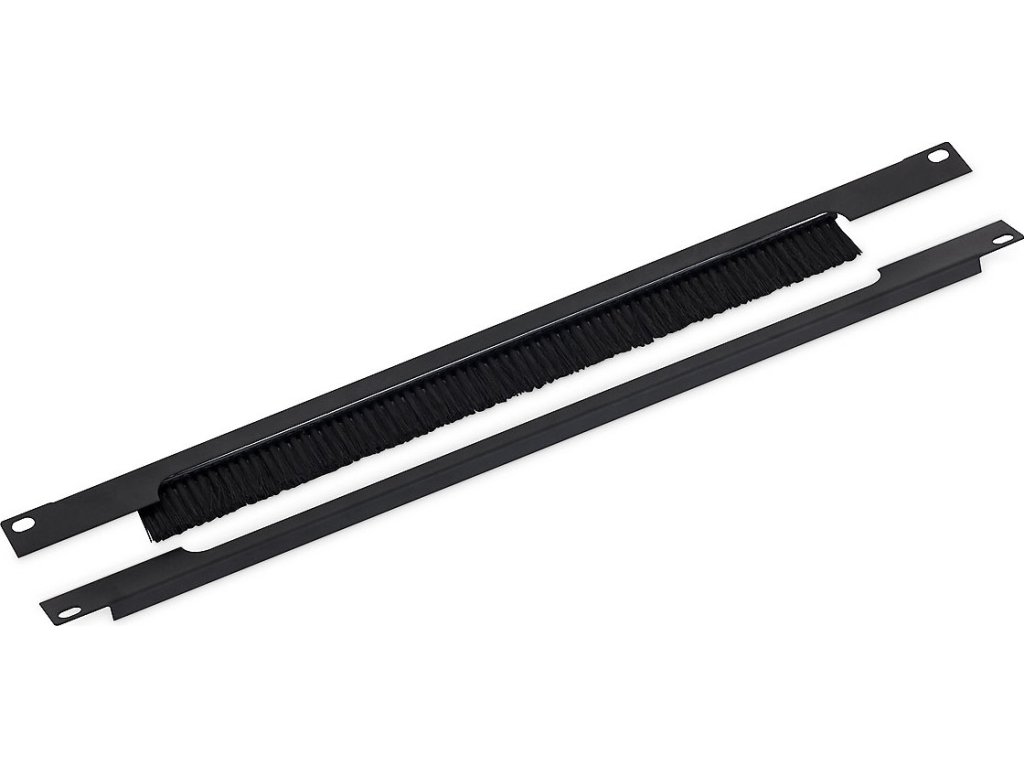 19" průchozí panel 1U rozdělený horizontálně, kartáč, otvor 350 x 21 mm.