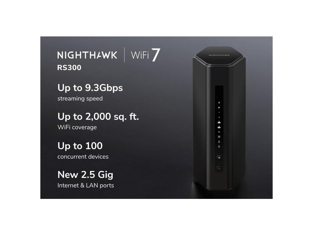 WiFi 7 od lídra v oblasti inovací WiFi - Nighthawk WiFi 7 je postaven na více než 25 letech průkopnických inovací a precizně navržen podle přísných standardů kvality společnosti NETGEAR, takže můžete využívat všech výhod, které WiFi 7 nabízí. Bleskově rychlá WiFi -Bleskově rychlá WiFi 7 s rychlostí až 9,3 Gb/s pro hraní her, plynulé streamování, videokonference a zábavu. Větší kapacita pro činnosti náročné na data - Připojte až 100 zařízení, jako jsou bezpečnostní kamery, chytrá domácí zařízení a reproduktory, a užívejte si streamování videa v rozlišení 4K/8K, online hraní a videokonference. Vícegigové rychlosti s internetovým portem 2,5GbE- Využijte 2,5Gigový internetový port pro kabelové a optické tarify s rychlostí až 2,5 Gb/s. Kompatibilní s jakýmkoli poskytovatelem internetových služeb. Kabelový port 2,5 GbE a další - Připojte kabelová zařízení a zvyšte výkon prostřednictvím dvou portů 2,5Gb/s Ethernet LAN a dvou portů 1Gb/s Ethernet LAN. Světelně rychlý výkon - 6GHz WiFi pásmo 1 poskytuje další vysokorychlostní komunikaci pro zvýšení výkonu. Rozsáhlé pokrytí-Ultra výkonné anténní pole poskytuje pokrytí až 2 500 čtverečních stop. Aplikace Nighthawk App- Snadné nastavení routeru, správa sítě odkudkoli, pozastavení internetu na připojených zařízeních, rychlý test rychlosti internetu, sledování využití internetových dat, nastavení oddělených sítí pro hosty a další funkce. Rozsáhlé funkce-Pomocí rozhraní USB 3.0 můžete sdílet soubory s libovolnými připojenými zařízeními, používat síť VPN pro zabezpečený vzdálený přístup k domácí síti a další.Více informací na stránkách výrobce: https://www.netgear.com/uk/home/wifi/routers/rs300/#twister-list