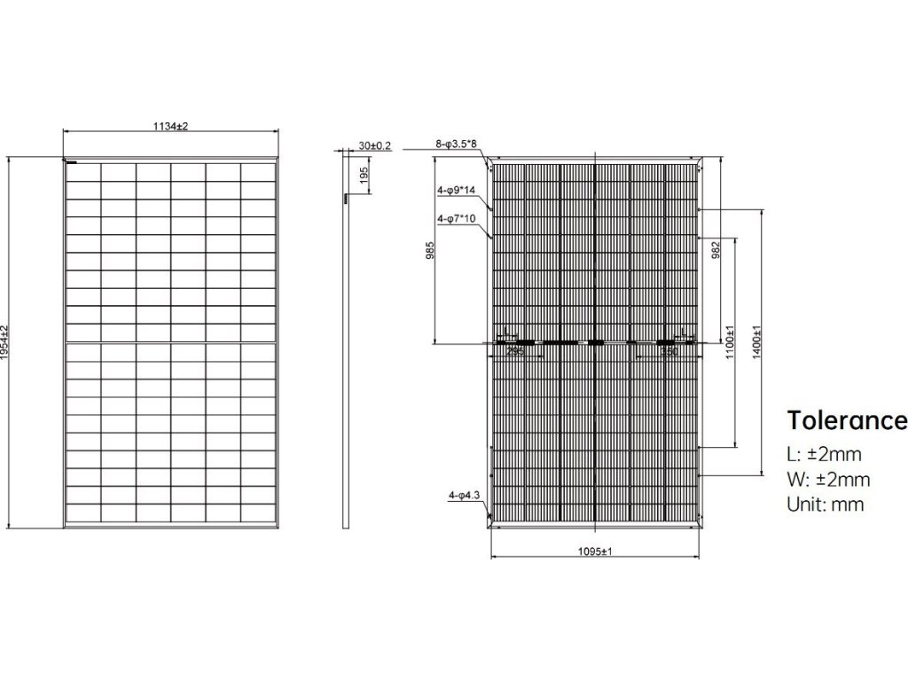 Solární panel značky AIKO s nominálním výstupním výkonem 500 W je vyroben s využitím pokročilé technologie N-type monokrystalických článků s ABC (All Back Contact) konstrukcí, která zajišťuje vyšší účinnost a moderní vzhled bez stínění na přední straně. Panel má pevný rám z hliníkové slitiny v elegantní černé barvě. Pro snadné připojení obsahuje 2 výstupní kabely s MC4 kompatibilními konektory, každý o délce 1,2 m, vhodné jak pro vertikální, tak horizontální instalace. Rozměry panelu jsou 1954 × 1134 × 30 mm, hmotnost 27,2 kg a účinnost dosahuje až 22,6 %.