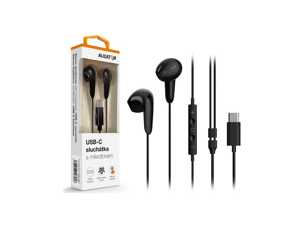 Sluchátka ALIGATOR AE007 Cool Music, USB-C, černá