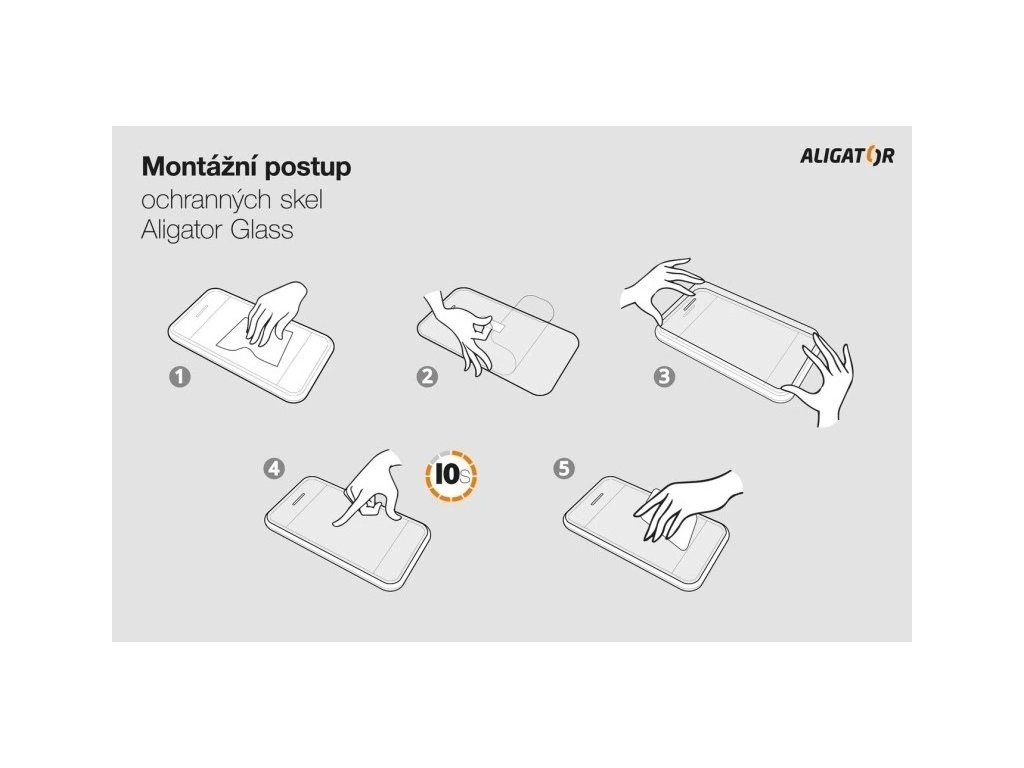 Ochranná skla Aligator Glass se díky své konstrukci, kvalitním lepidlům a unikátní technologii dobře lepí, nezanechávají bublinky a lze je opětovně sejmout a znovu použít. Pro pohodlnou montáž je balení doplněno čistící a leštící utěrkou a jednoduchým návodem, podle kterého zvládne montáž skla každý.
