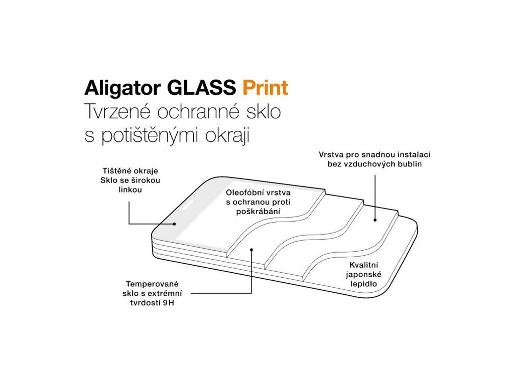 Toto ochranné sklo je složeno ze dvou vrstev. Jednu vrstvu tvoří tenké, odolné tvrzené sklo, druhou vrstvu tvoří speciální fólie, která zajistí perfektní přilnutí skla k displeji telefonu. Díky unikátní technologii nezanechává bublinky a vy si tak přítomnost spolehlivého ochránce displeje ani neuvědomíte. Aligator Glass Print disponuje tištěnými okraji, díky kterým sklo pokrývá celou plochu displeje.