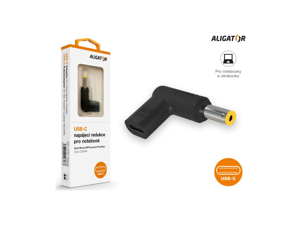 USB-C napájecí redukce 5,5 x 2,5 mm pro notebooky Acer, Asus, HP, Lenovo a Toshiba řady ALIGATOR POWER.