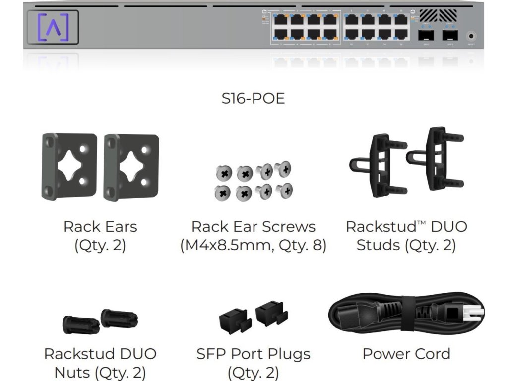 ALTA Switch 16 POESwitch nabízející 16 GbE RJ-45 portů, z nichž 8 podporuje PoE+ (802.3at) s celkovým napájecím výkonem až 120 W, a 2 SFP porty. Přepínací kapacita dosahuje až 36 Gbps a rychlost směrování až 26,8 Mpps. Součástí balení jsou držáky pro uchycení do racku.