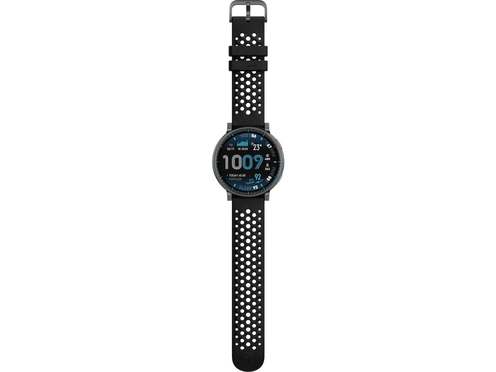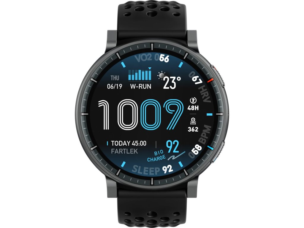 Mimořádně velký displej hodinek umožňuje přehledné zobrazení všech dat a je dobře čitelný i na přímém slunečním světle. Zaznamenávejte silové tréninky s automatickou detekcí opakování, sérií a doby odpočinku u 25 druhů cviků . Díky této funkci se můžete plně soustředit na výkon a nenechat se ničím vyrušovat. Uložte si do hodinek své oblíbené podcasty a objevujte nové trasy a místa díky detailním offline mapám. Na jedno nabití vydrží při běžném používání hodinky Amazfit Active Max nabité až 25 dní. Udrží s vámi krok při jakékoliv aktivitě. Poznávejte lépe své tělo každý den. Skóre BioCharge™ se upravuje na základě vašich denních aktivit a hladiny stresu. Ukazuje, kdy je vhodný čas na intenzivní trénink a nebo kdy je naopak vhodné si odpočinout. Váš komplexní zdroj informací o tréninku, výživě a regeneraci. Získejte personalizované informace, stanovte si cíle a sledujte svůj pokrok.