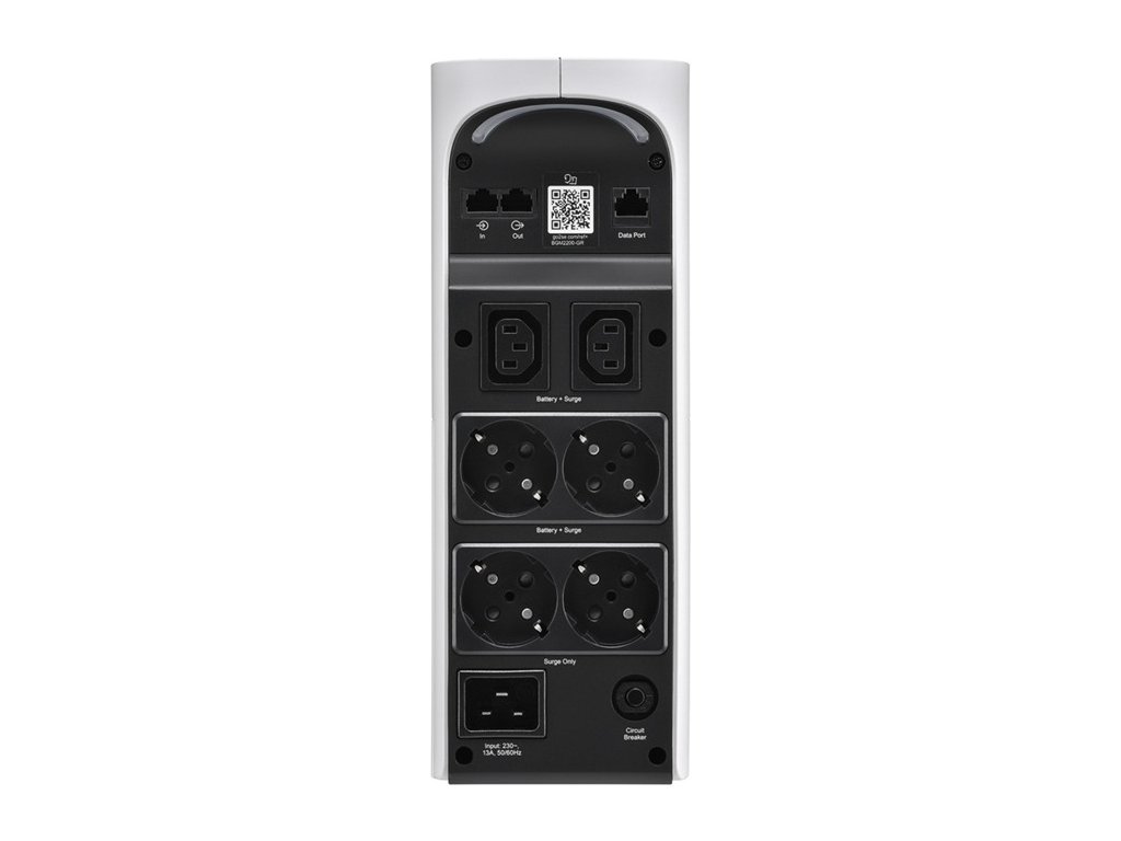 Výstupní přípojky: 4 × Schuko (s ochranou proti přepětí), 2 × IEC 60320 C13