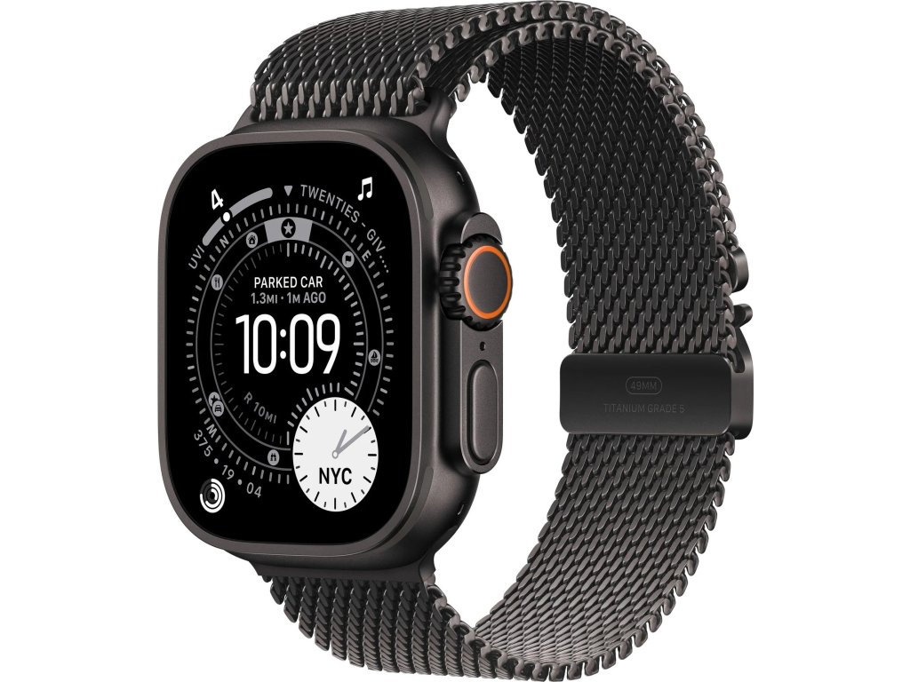 Apple Watch Ultra 3 49mm Černý titan s černým titanovým milánským tahem - S