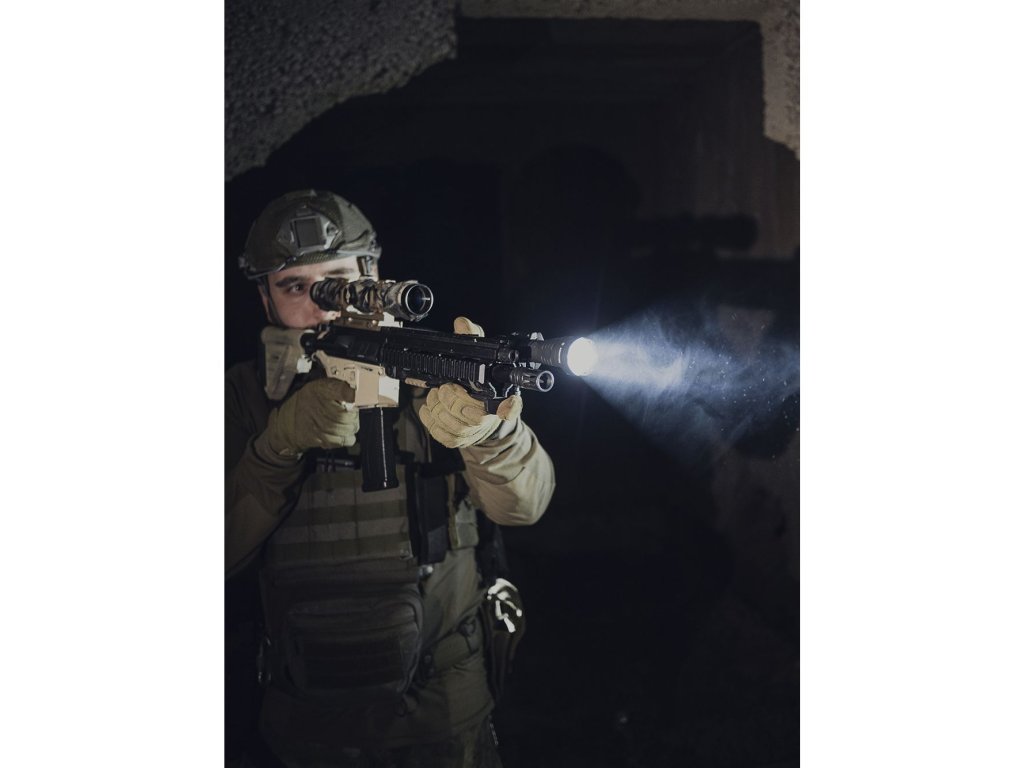 Silikónová rukoväť, bezhlučné zadné taktické tlačidlo, kompatibilita s akýmikoľvek držiakmi na zbrane, originálne diaľkové spínače a farebné filtre: dobre premyslený dizajn zaručuje najefektívnejšiu taktickú aplikáciu.