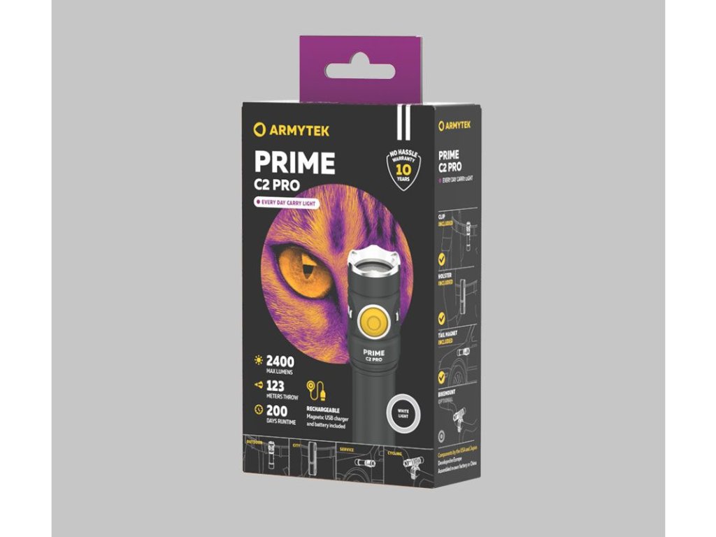 Nový Prime C2 Pro sa vyznačuje pôsobivým jasom 2 230 lúmenov a širšími uhlami vyžarovania ako u predchádzajúcej verzie. Baterka má tiež ďalšie konštrukčné výhody pre ešte pohodlnejšie každodenné použitie: skrátená dĺžka tela, dodatočný nápadný rám. Baterka je dodávaná s vysokokapacitnou 18650 Li-Ion 3500 mAh batériou, ktorá sa nabíja značkovým magnetickým USB káblom.