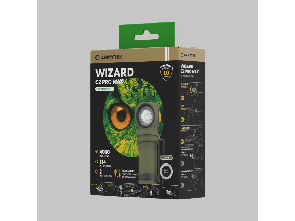Wizard C2 Pro Max je najnovší model celosvetovo žiadaného multifunkčného radu Armytek Wizard. Nielen jasný, ale aj úžasný svetelný výkon 4000 lúmenov.
