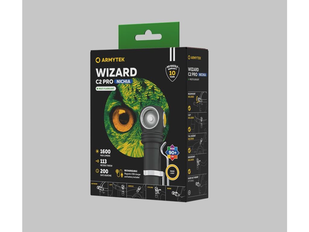 Armytek Wizard C2 Pro Nichia / Warm / 1600 lm / CRI>90 / TIR 70°:120° / +holster / 1x18650 (inel.) - (F06801W)