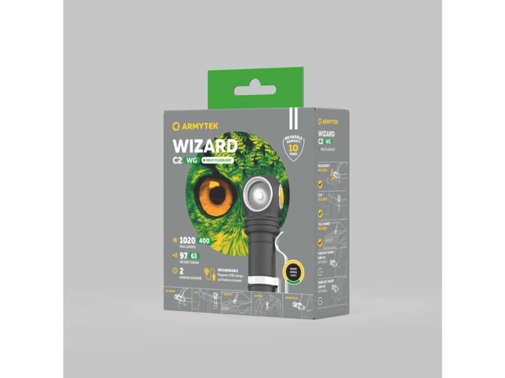 Armytek Wizard C2 WG Magnet USB / Warm & Green / 1020 lm & 400 lm / TIR 70°:120° / 1x18650 (inel.) - (F09201W)