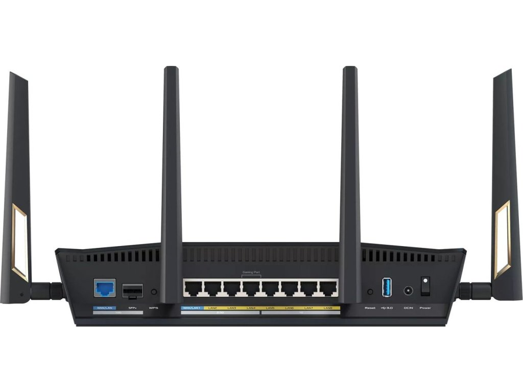 dvoupásmový WiFi 7 (801.11be) AiMesh rozšiřitelný router, 7,2 Gb/s, 34G kabelová kapacita, dva 10G porty, SFP+ port, čtyři 2,5G porty, zabezpečení na komerční úrovni, Guest Network Pro, VPN