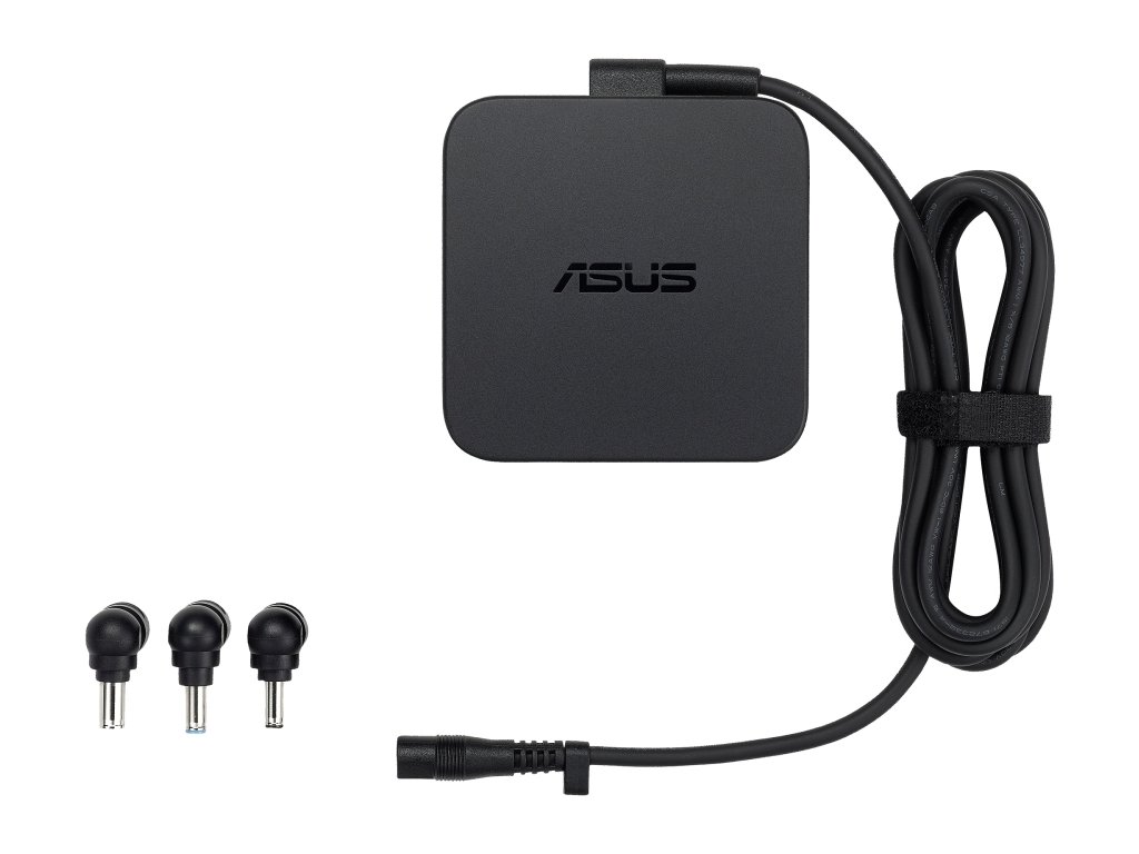 ASUS U65W-01 Universal Mini Multi-tips adaptér 65 WOriginální univerzální napájecí adaptér pro notebooky ASUS s výkonem 65 W a třemi měnitelnými konektory o průměru 4 mm, 4,5 mm a 5,5 mm. Délka kabelu je 1,8 m a délka přiložené síťové šňůry do zásuvky je 0,9 m.