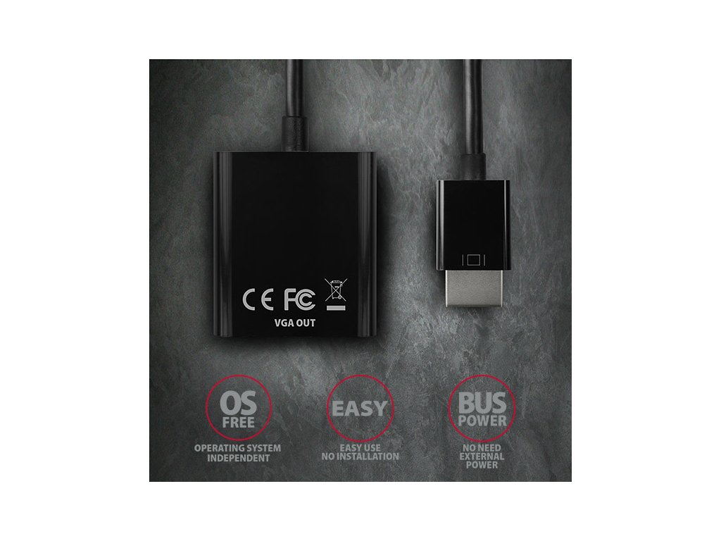 Hardwarový převodník bez potřeby jakékoliv instalace či nastavování zajistí přenos obrazu až do rozlišení 1920x1200 (WUXGA) při obnovovací frekvenci 60Hz. Inovované provedení elektroniky adaptéru zajišťuje vysoce kvalitní čistý a ostrý obraz.
