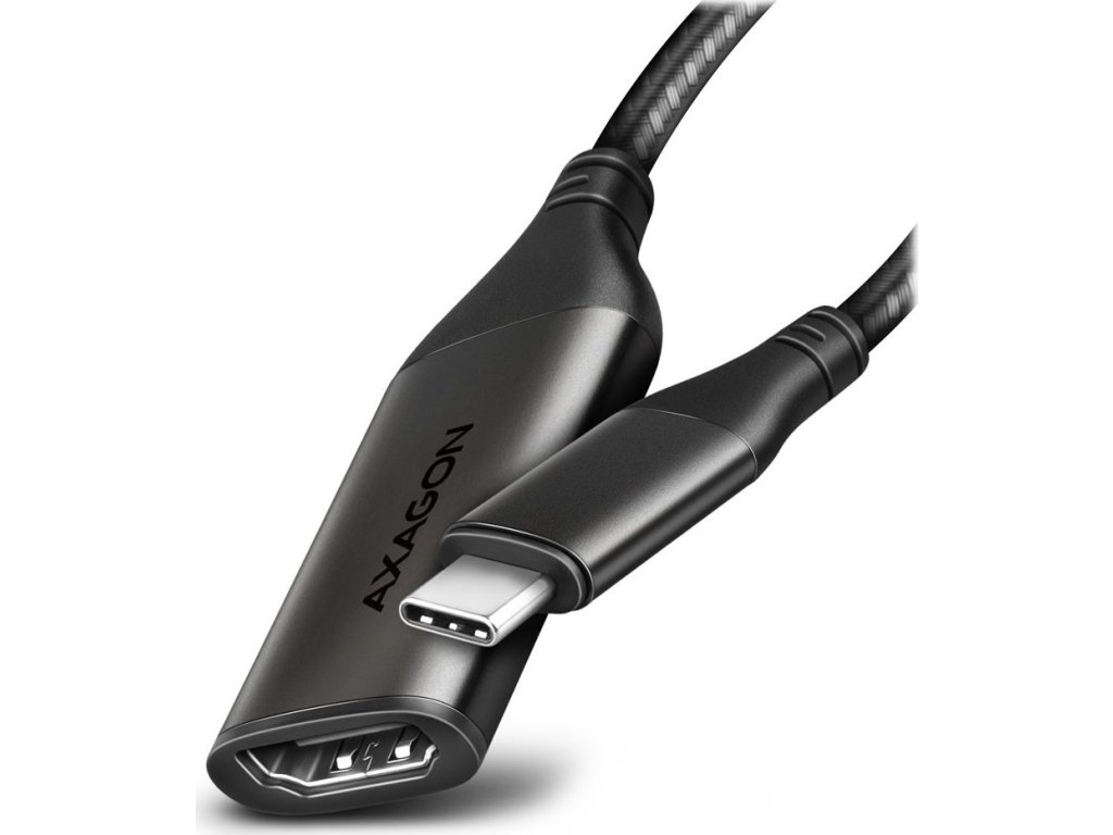 Moderní USB-C -> HDMI aktivní redukce AXAGON RVC-HI2M pro připojení HDMI monitoru/TV/projektoru k notebooku nebo telefonu pomocí USB-C konektoru.