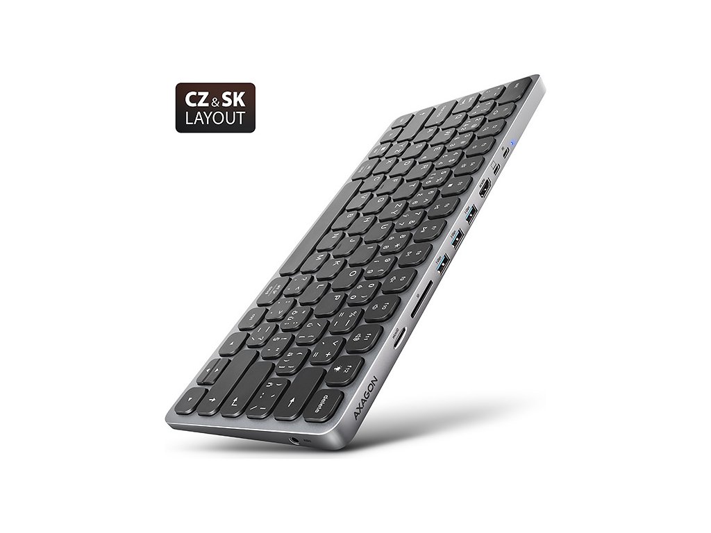 AXAGON HMC-KB-CS, USB 5Gbps hub s CZ/SK klávesnicí, HDMI 4K/60Hz, 3x USB-A, SD/mSD, audio, PD 100W