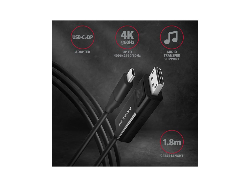 AXAGON RVC-DPC, USB-C -> DisplayPort redukce / kabel 1.8m, 4K/60Hz