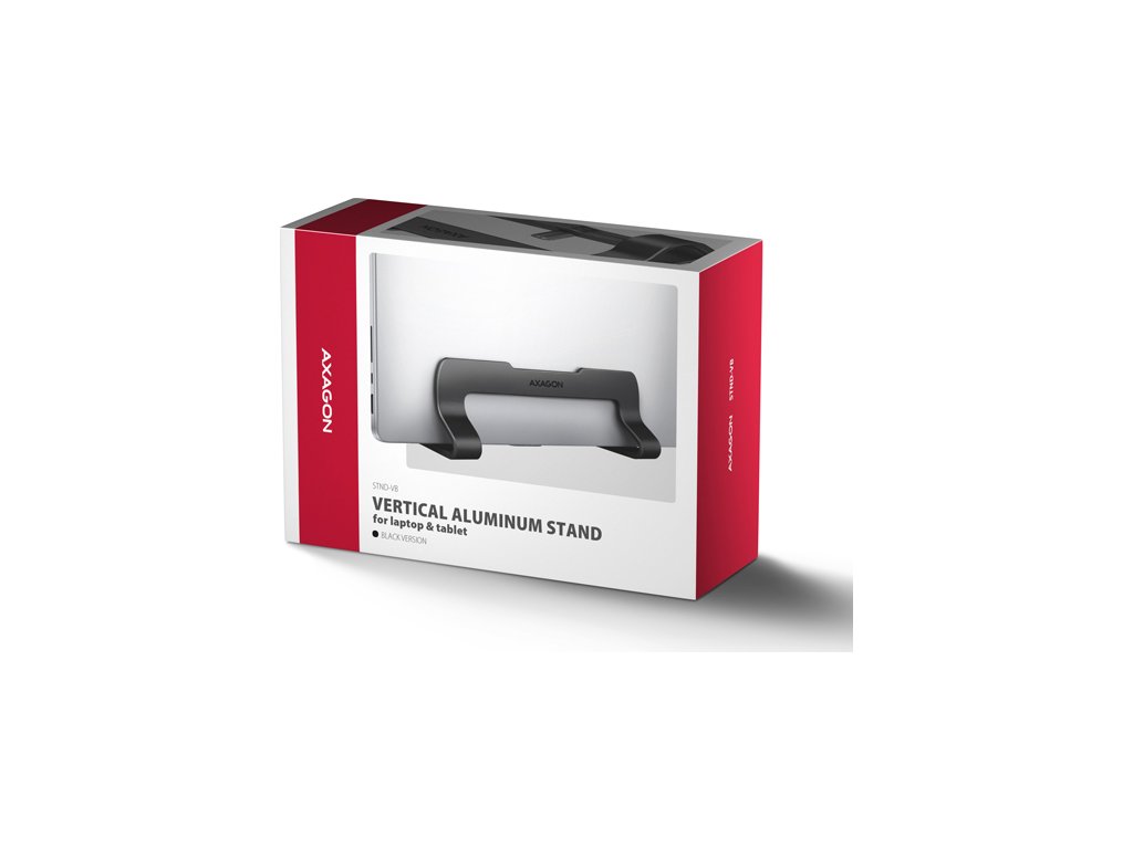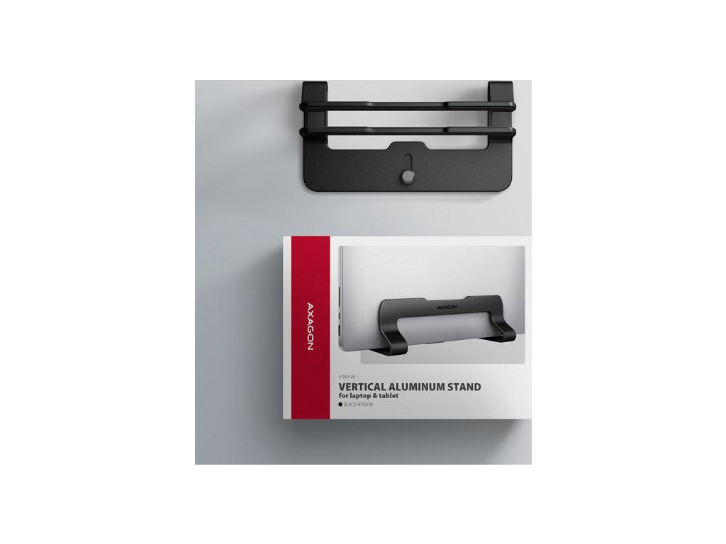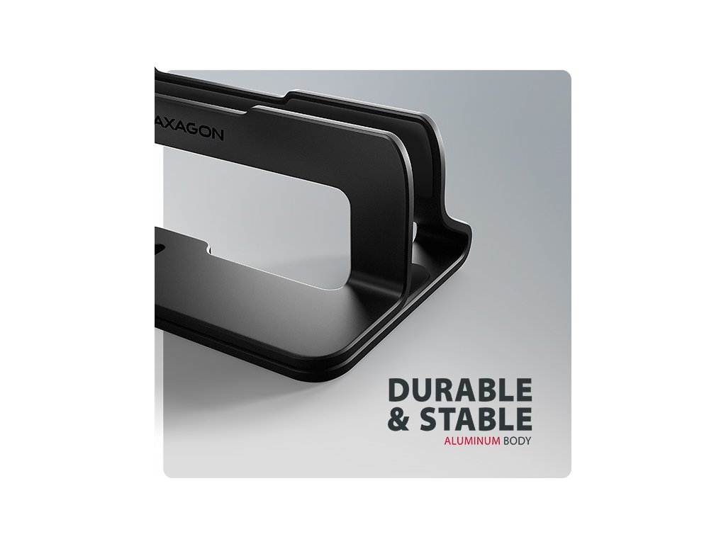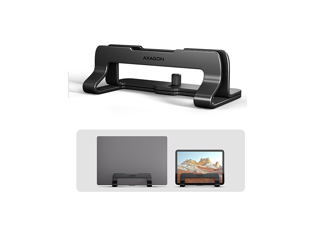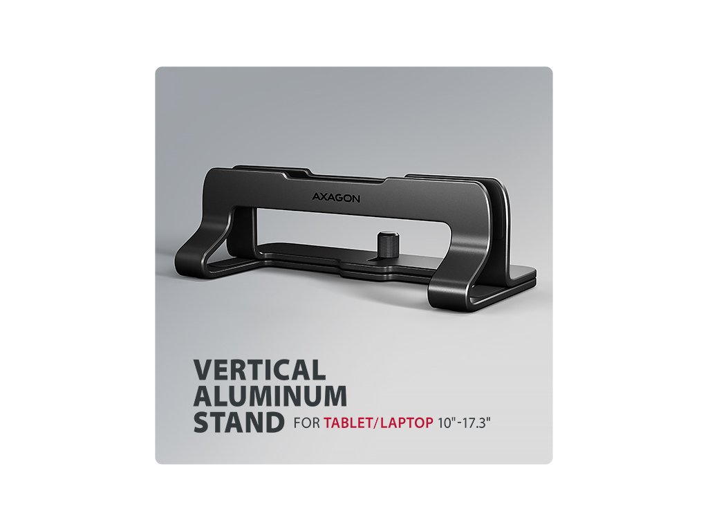 AXAGON STND-VB, vertikální hliníkový stojan pro notebooky 10"-17.3, nastavitelný rozestup, černý