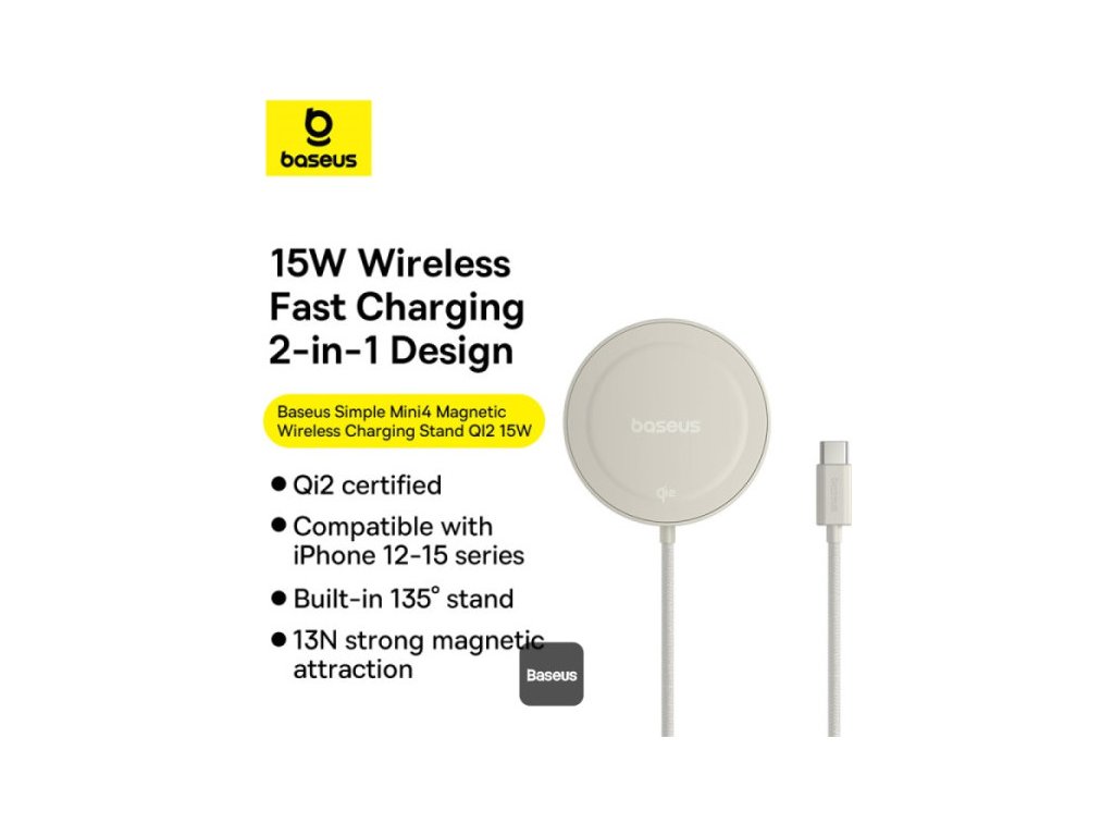 Baseus Simple Mini4 Magnetic Qi2 15W bezdrátový nabíjecí stojan – 135° nastavitelný pomocí vestavěného 1M kabelu typu – C – titanově zlatý