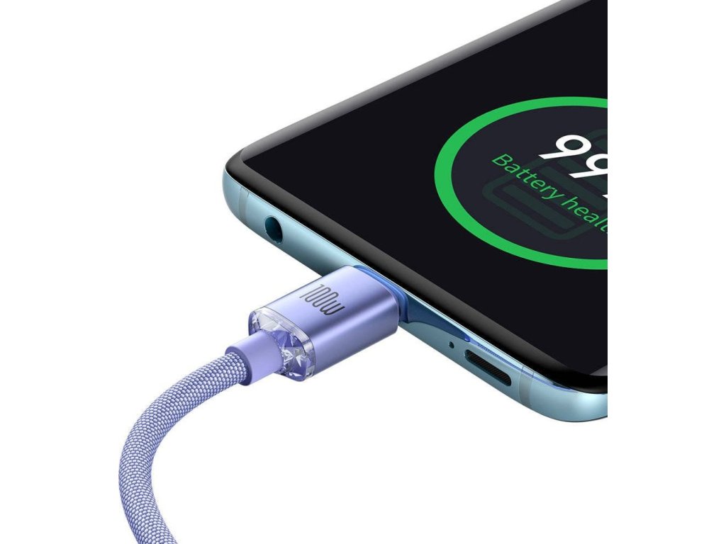 Baseus CAJY000705 Crystal Shine Series Datový Kabel USB-C - USB-C 100W 2m Purple