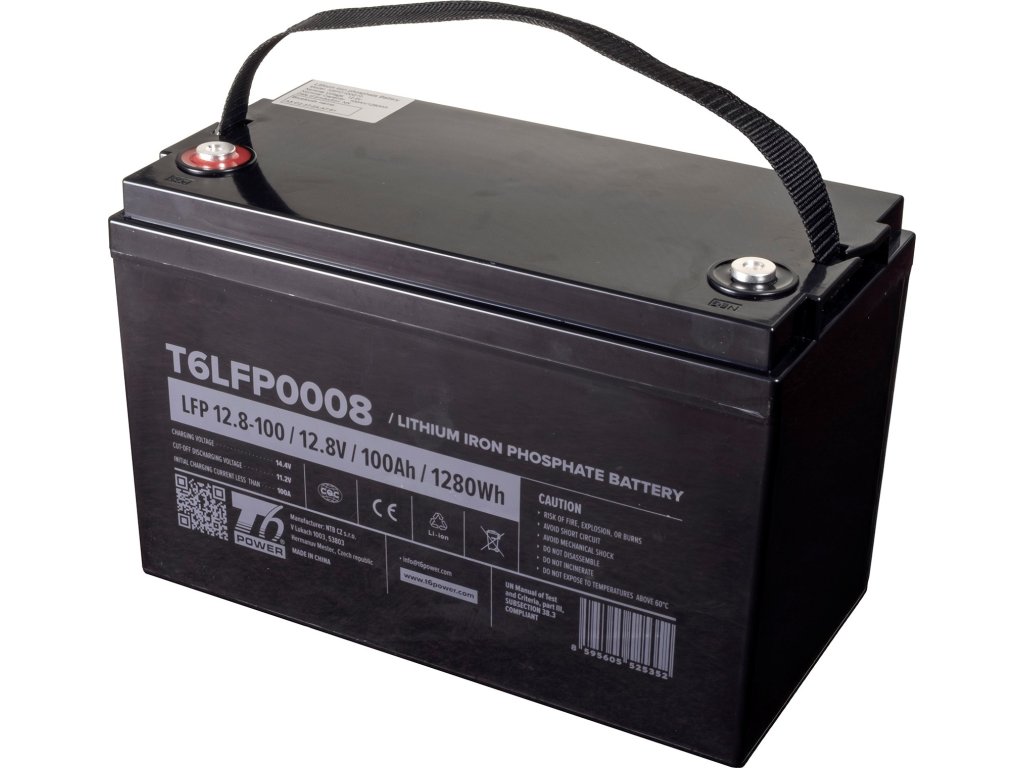Zapomeňte na omezení olověných baterií! Baterie T6 Power LiFePO4, 12.8V, 100Ah, 1280Wh, Bluetooth, T16 představuje revoluční řešení pro aplikace, které vyžadují spolehlivý, výkonný a dlouhodobý zdroj energie. Díky pokročilé technologii LiFePO4 vám tato baterie přináší nesrovnatelně delší cyklickou životnost a celkovou výdrž, větší kapacitu a maximální bezpečnost.
