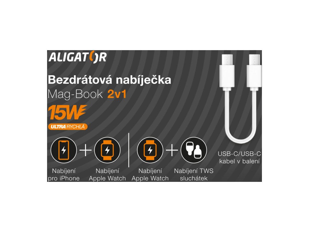 Bezdrátová nabíječka Aligator Mag-Book 2v1 15W pro iPhone a Apple Watch s podporou moderní technologie MagSafe