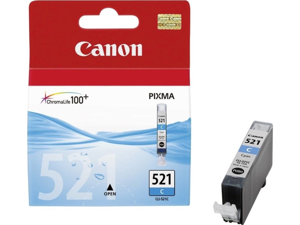 Azurová inkoustová kazeta Canon CLI-521C, 9ml, kompatibilní s Canon Pixma IP 3600, Canon Pixma IP 4600, Canon Pixma IP 4600 X, Canon Pixma IP 4700, Canon Pixma MP 540, Canon Pixma MP 550, Canon Pixma MP 560, Canon Pixma MP 620, Canon Pixma MP 630, Canon Pixma MP 640, Canon Pixma MP 640 R, Canon Pixma MP 980, Canon Pixma MP 990, Canon Pixma MX 860, Canon Pixma MX 870.