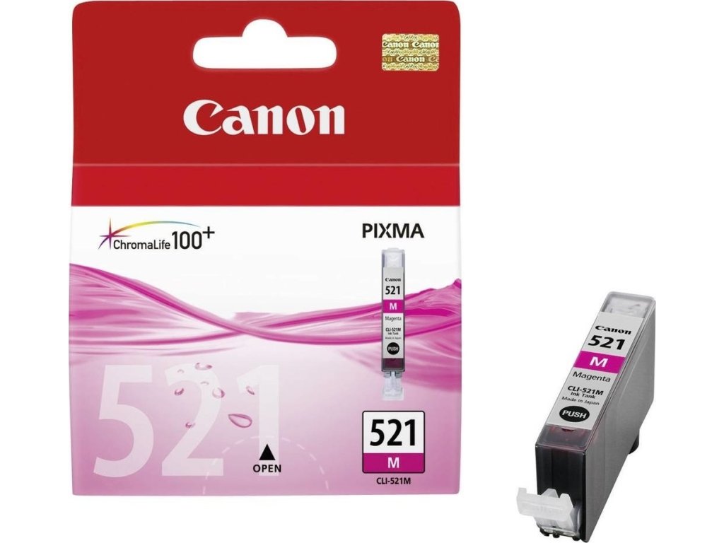 Purpurová inkoustová kazeta Canon CLI-521M, 9ml, kompatibilní s Canon Pixma IP 3600, Canon Pixma IP 4600, Canon Pixma IP 4600 X, Canon Pixma IP 4700, Canon Pixma MP 540, Canon Pixma MP 550, Canon Pixma MP 560, Canon Pixma MP 620, Canon Pixma MP 630, Canon Pixma MP 640, Canon Pixma MP 640 R, Canon Pixma MP 980, Canon Pixma MP 990, Canon Pixma MX 860, Canon Pixma MX 870.