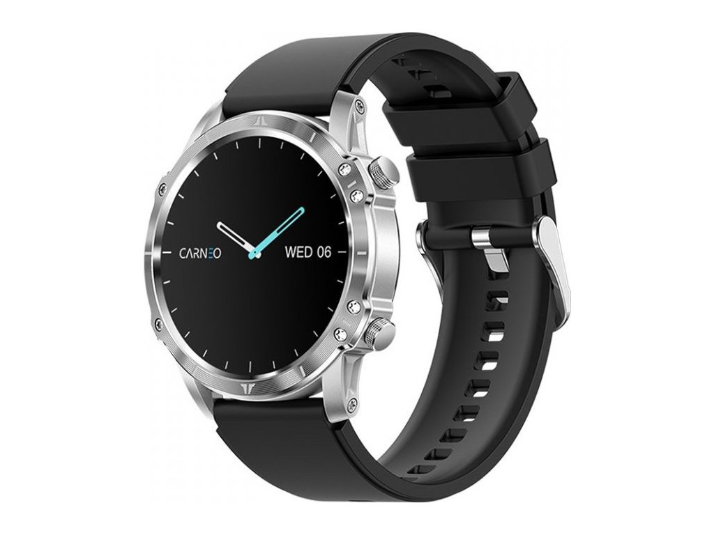 Moderní outdoorové fitness chytré hodinky Carneo ADVENTURE HR+ druhé generace v elegantní stříbrné barvě mají kulatý barevný displej SUPER AMOLED chráněný extrémně tvrdým sklem Gorilla. Umožňují měřit srdeční tep, stres, BMI, ujetou vzdálenost, sledovat spálené kalorie nebo kvalitu spánku. Obsahují 380mAh baterii s výdrží až 5 dní. Podle certifikace IP67 jsou odolné proti vodě a prachu. Jsou kompatibilní s operačními systémy iOS a Android. Hodinky mají na dotek příjemný silikonový řemínek v černé barvě, který lze vyměnit za řemínek v jiné barvě nebo kožený či kovový a změnit tak sportovní vzhled hodinek za manažerský. Vkusný outdoorově-luxusní design lze snadno kombinovat s oblekem nebo volnočasovým oblečením. Hodinky i aplikace jsou kompletně v češtině, takže si s nimi určitě dobře porozumíte.