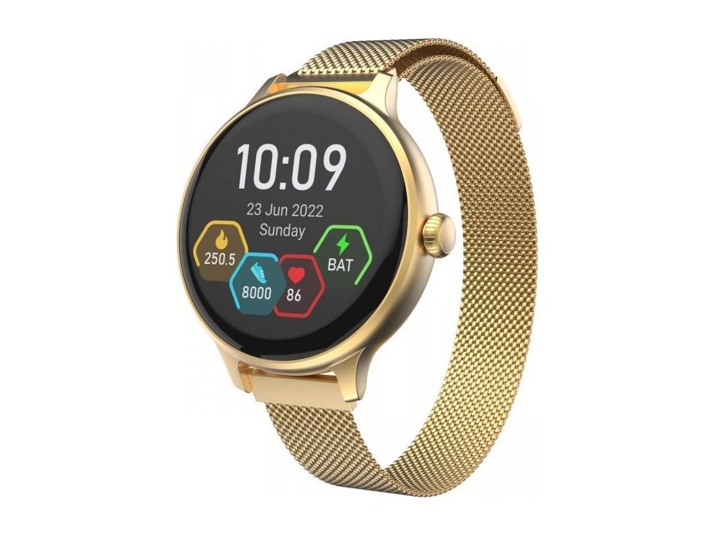 Moderní fitness smart hodinky Carneo HERO mini HR+ v elegantním zlatém provedení disponují kulatým Super HD AMOLED barevným displejem. Umožňují měření srdečního tepu, stresu, BMI, ušlé vzdálenosti, monitorování spálených kalorií či kvality spánku. Jejich součástí je 230mAh baterie s výdrží 3 až 4 dny. Podle certifikace IP67 jsou odolné vůči vodě a prachu. Jsou kompatibilní s operačním systémem iOS a Android. Hodinky mají luxusní Milánský, kovový řemínek v ryze zlaté barvě, který lze vyměnit za silikonový řemínek v jiné barvě či kožený a tím pádem změnit hodinkám manažerský vzhled za sportovní. Vkusný, jednoduchý a luxusní design se snadno kombinuje k obleku či volnočasovému outfitu. Hodinky i aplikace jsou kompletně v češtině, takže si budete jistě spolu dobře rozumět. Součástí balení je také silikonový, bílý řemínek.