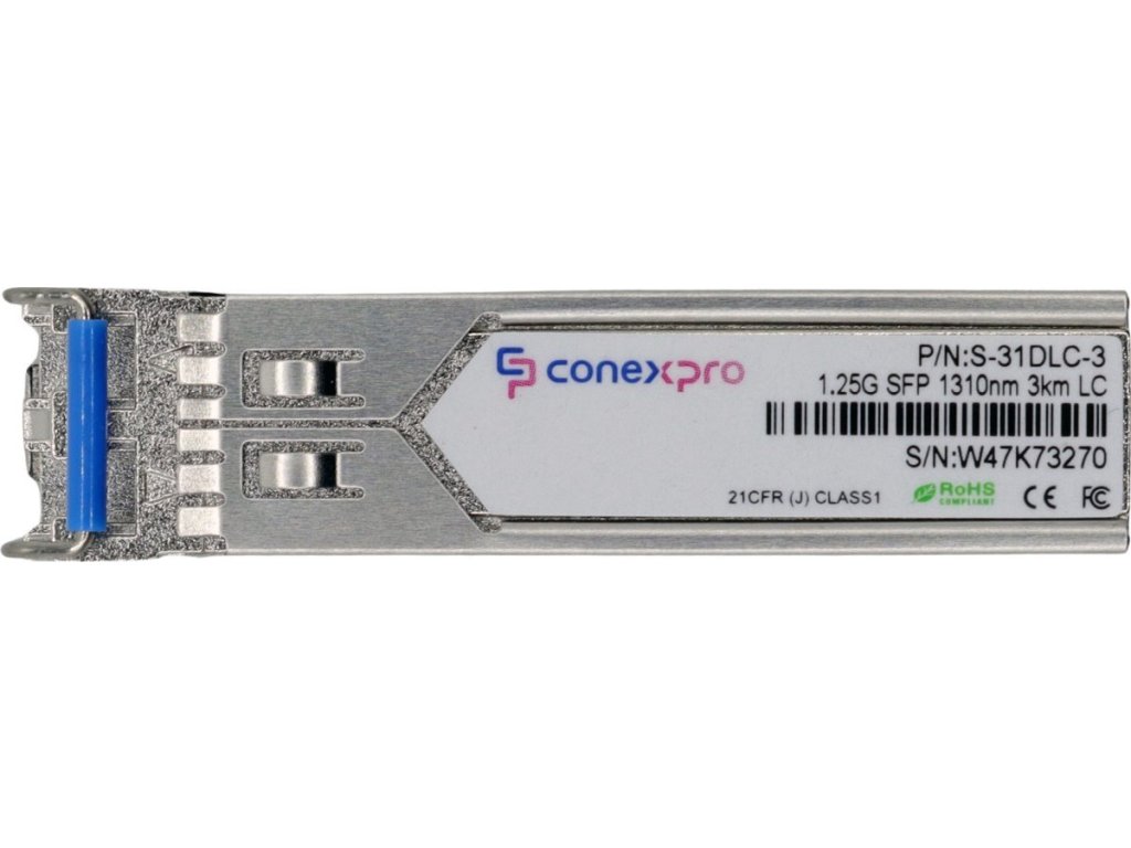 Gigabitový Singlemode SFP modul od výrobce Conexpro s vlnovou délkou (Tx i Rx) 1310 nm, rychlostí 1 Gbps, vybavený dvěma LC konektory s UPC broušením a je určený pro spojení na vzdálenost 3 km. Tento modul poskytuje univerzální kompatibilitu, což znamená, že je schopen spolupracovat s téměř všemi dostupnými aktivními prvky. Samozřejmostí je podpora diagnostiky optického spojení pomocí funkce DDM (Digital Diagnostic Monitoring).