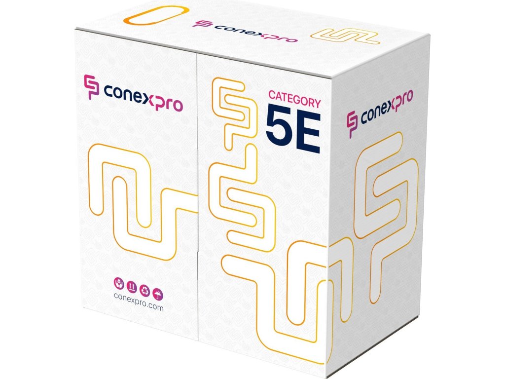 FTP kabel kategorie 5e značky Conexpro je navržen pro venkovní rozvody strukturované kabeláže a bez problémů splňuje mezinárodní standardy včetně všech aktuálních dodatků. Kabel umožňuje přenos dat rychlostí až 1 Gbps (1000 Base-T). Plášť má černou barvu, je vyroben z PE materiálu, se stíněním a uzemňovacím drátem pro připevnění ke konektoru s očkem. Vodiče mají hliníkové jádro a jsou potaženy vrstvou mědi, tzv. CCA s celkovým průřezem AWG24. Kabel je balen do kvalitní kartonové krabice s moderním designem a je označen po každém metru od 0 do 305 m.