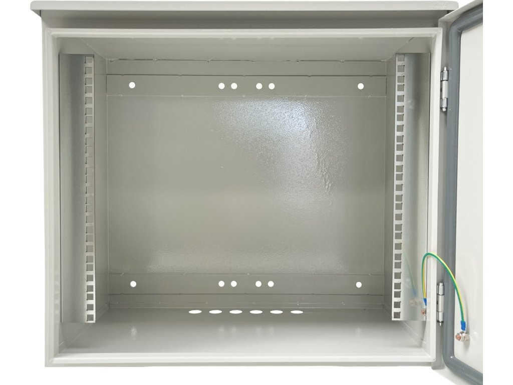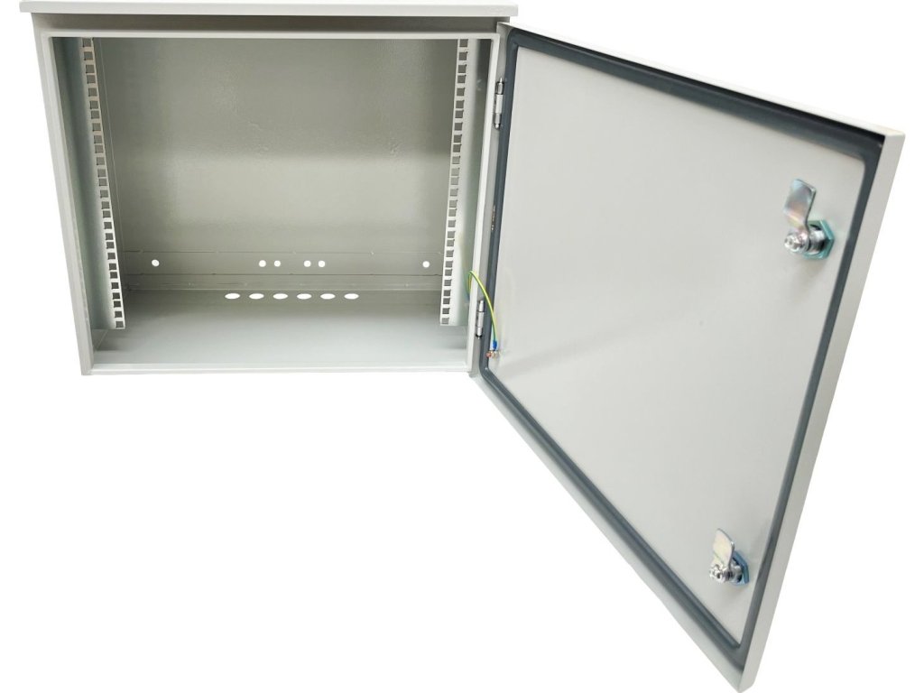 Jednodílný datový rozvaděč ideální pro venkovní nasazení díky odolnému IP65 krytí s montáží na zeď či stožár. Velikost 19", 9U pozic a 320 mm hloubka (235 mm od zadní stěny k rackmount liště) zajišťují dostatečný prostor pro vaše síťová zařízení. Rozvaděč je konstruován z 1,5 mm ocelových plechů, s elegantní šedou barvou (RAL7032) a dvojicí zámků se stejným klíčem pro jednoduchou bezpečnost. Spodní strana obsahuje 6 otvorů o průměru 25 mm s gumovými průchodkami a zadní strana 12 otvorů pro přichycení na zeď či stožár - k nevyužitým otvorům jsou v balení gumové záslepky. Celkové rozměry rozvaděče jsou 560 x 500 x 320mm, čímž je zajištěna kompaktní a efektivní instalaci.