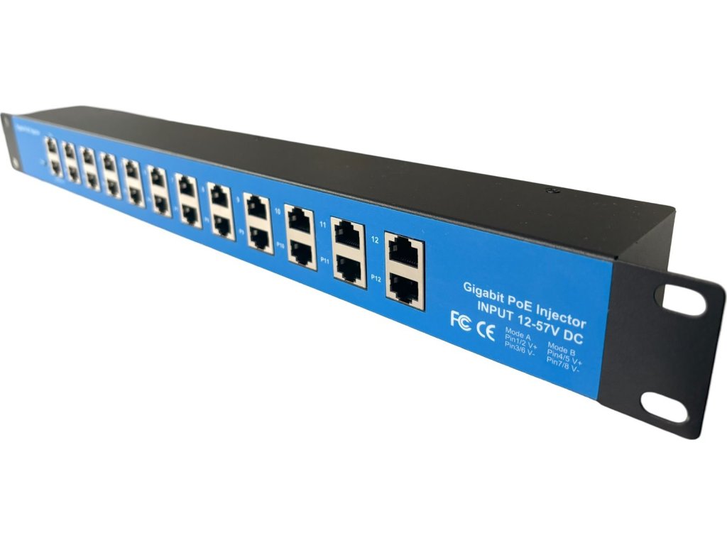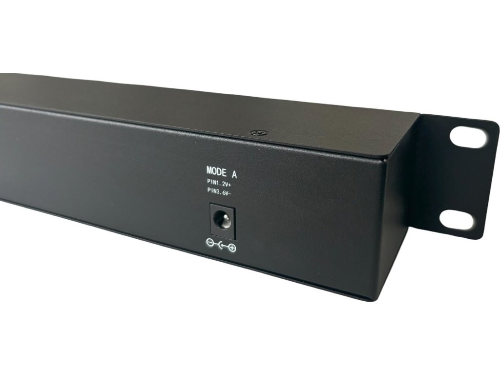 Pasivní Gigabitový PoE panel do racku od Conexpro umožňuje napájení až 12 zařízení s podporou pasivního PoE, ideální pro aktivní prvky jako Wi-Fi jednotky MikroTik nebo Ubiquiti Networks. Panel je uzpůsoben pro instalaci do 19" datového rozvaděče (výška 1U). Každé zařízení je obsluhováno přes 1 datový port a 1 port s kombinací dat a napájení. Na zadní straně jsou dva napájecí konektory (2.1/5.5 mm) pro režimy A a B. Rozpětí vstupního napětí 12–57 V DC s limitem 1A na port a zajišťující celkový výkon až 300 W s příslušným zdrojem.
