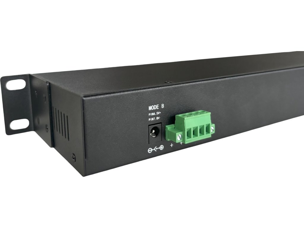 - Mode A: Podporuje aktivní zařízení napájená přes piny 1/2+ a 3/6-, například IP kamery, IP telefony, bezdrátové jednotky a další zařízení využívající napájecí standardy 802.3af/at.
