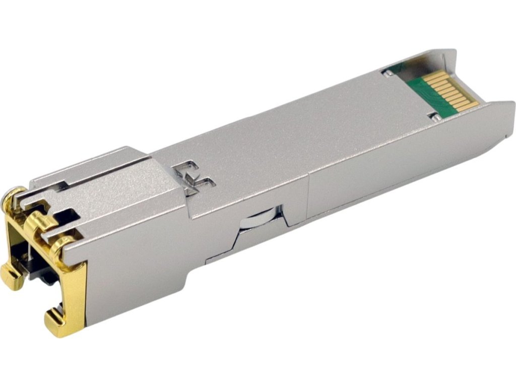 S-RJ45-01 představuje všestranný Gigabitový SFP metalický modul od výrobce Conexpro s RJ45 konektorem pro použití s metalickým kabelem a možností přenosu dat rychlostí 10/100/1000 Mbps. Dosah modulu je omezen na technologických 100 metrů. Tento modul je především navržen pro optické switche, kde je nedostatek metalických portů.