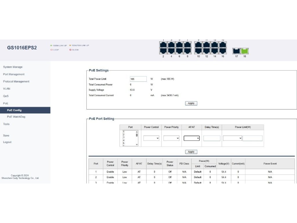 Cudy GS1016EPS2 Gigabit light managed PoE Switch, 200W