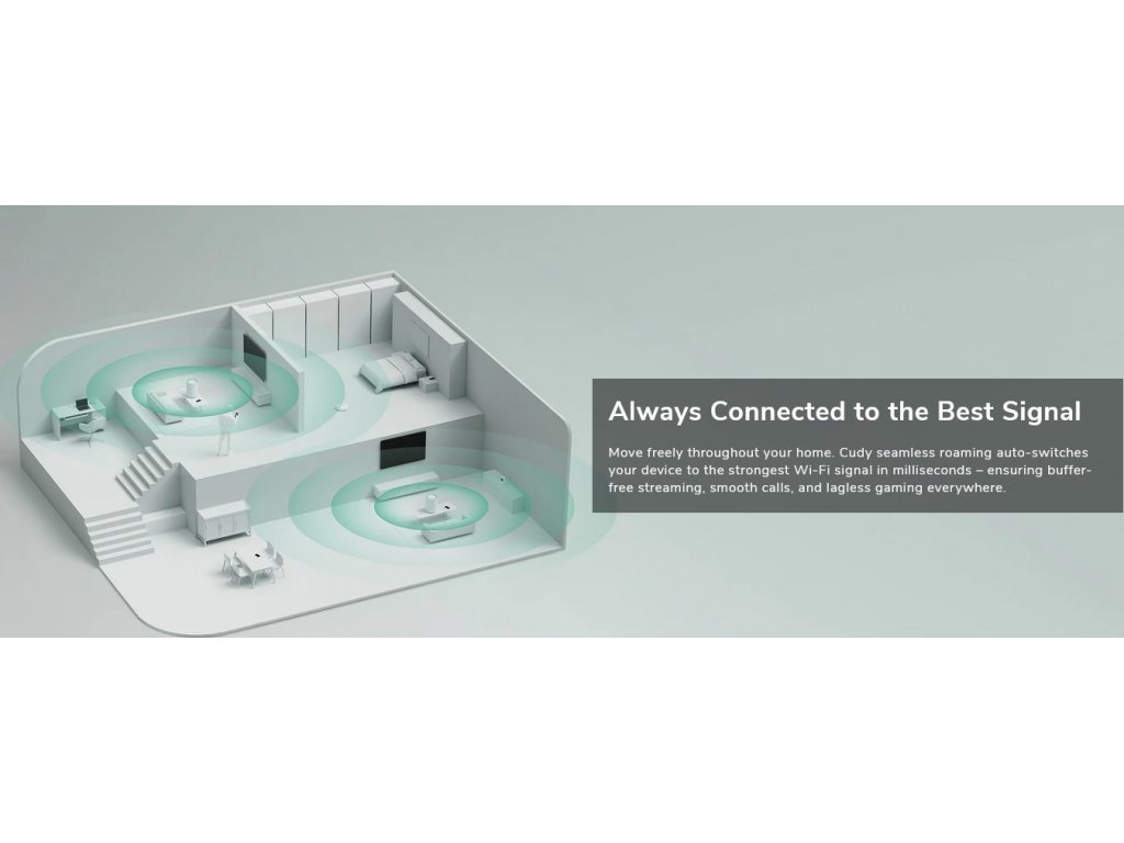 Mesh systém není nic jiného než sada routerů pro použití v domácnostech, bytech, kancelářích, kde je pokrytí Wi-Fi sítí z jednoho routeru příliš slabé. Více Mesh jednotek si mezi sebou automaticky předává klienty a komunikuje mezi sebou pouze bezdrátově. Balení obsahuje jedno zařízení, které je již nakonfigurováno a nevyžaduje zásah uživatele kromě nastavení názvu Wi-Fi. Ideální řešení pro pokročilé i laiky v oblasti správy sítí a budování velké bezdrátové sítě.