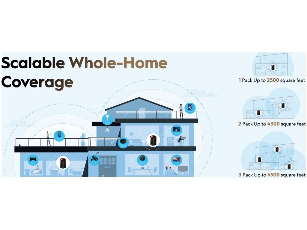 Mesh systém není nic jiného než sada routerů pro použití v domácnostech, bytech, kancelářích, kde je pokrytí Wi-Fi sítí z jednoho routeru příliš slabé. Více Mesh jednotek si mezi sebou automaticky předává klienty a komunikuje mezi sebou pouze bezdrátově. Balení obsahuje jedno zařízení, které je již nakonfigurováno a nevyžaduje zásah uživatele kromě nastavení názvu Wi-Fi. Ideální řešení pro pokročilé i laiky v oblasti správy sítí a budování velké bezdrátové sítě.