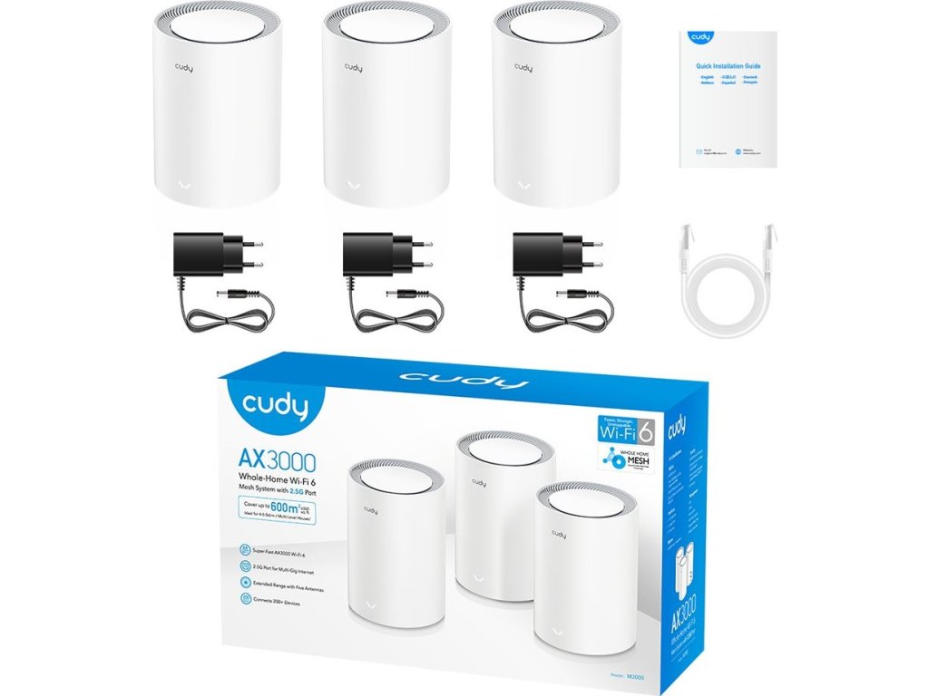 Cudy M3000 Wi-Fi 6 Mesh System, AX3000, 3 pack, bílý