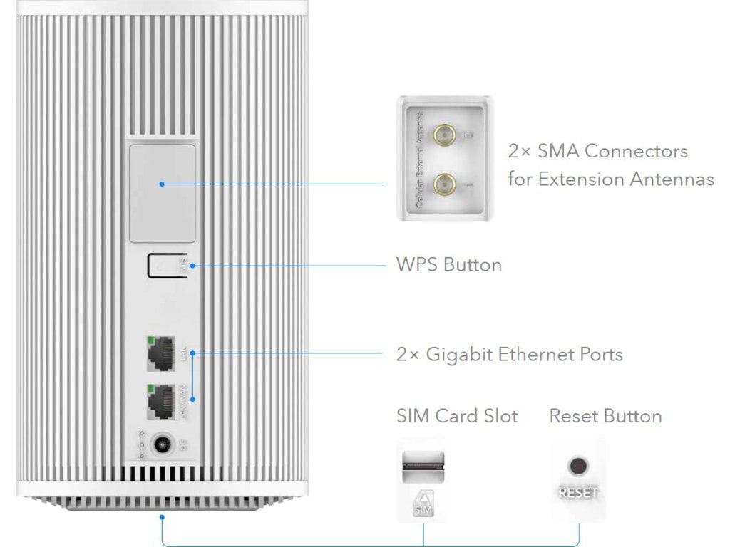 - 2x odnímatelná SMA anténa (pro 5G/LTE)