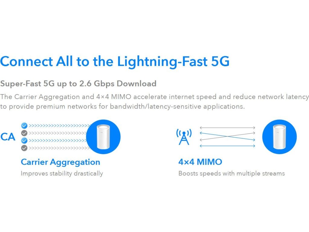 Rychlost 5G/4G/LTE - D/U: | 2600 / 650 Mbps, 2000 / 1000 Mbps |