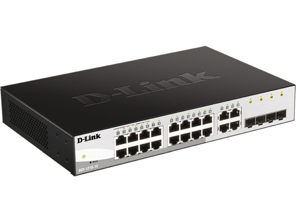 D-Link DGS-1210-16, 16-port 10/100/1000 Gigabit Smart Switch including 4 Combo 1000BaseT/SFP