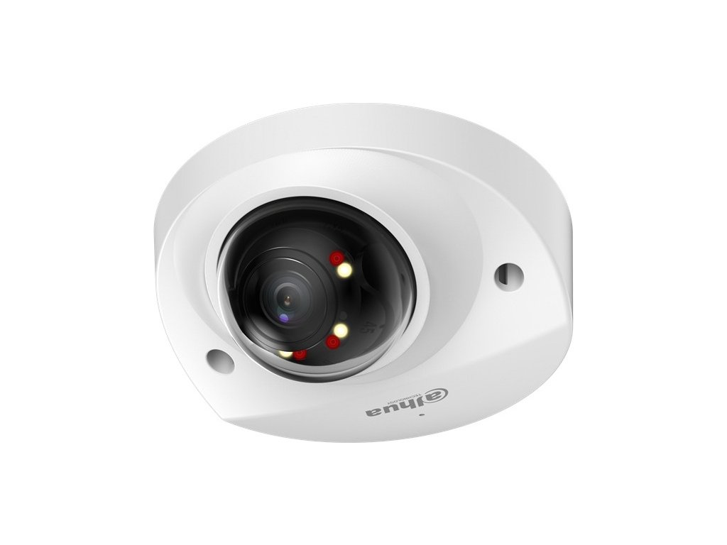 2 Mpx dome IP kamera, vonkajšia, Day/Night, Smart IR LED a VS LED prísvit s dosvitom 30 m, 1/2,8" 2-megapixelový CMOS snímač, rozlíšenie 1920 x 1080 px @ 1–25/30 fps, citlivosť 0,002 lx @ F1.6, objektív 2,8 mm, uhol záberu H: 105°, V: 56°, D: 126°; AWB, BLC, HLC, WDR 120 dB, 3DNR, kompresia H.265 / H.264 / H.264H / H.264B / MJPEG (sub stream), podpora Smart codec H.265+, H.264+, kompatibilná s ONVIF, RTMP; inteligentné funkcie: IVS (ochrana perimetra), Smart search, SMD; napájanie 12 V DC / PoE (802.3af), spotreba max. 12 V 6,4 W, pracovná teplota od -40 °C do +60 °C, IP67, IK10, rozmery 55,0 mm × ø108,9 mm, hmotnosť 0,41 kg.