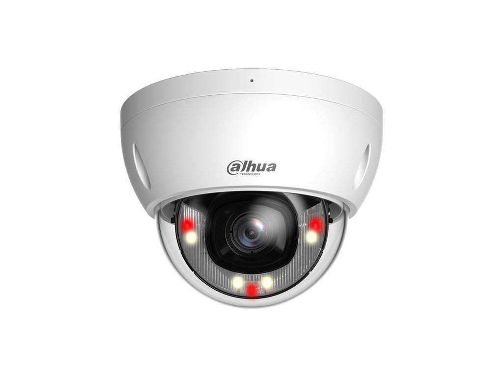 4 Mpx dome IP kamera, exteriérová, Day/Night, Smart IR LED a WL LED prísvit s dosvitom 30 m, 1 /2,9" 4 Megapixel CMOS, rozlíšenie 2688 x 1520 px @ 1-20 fps, 2560-1440 px @ 1-25/30 fps, citlivosť 0,006 lx @ F1.6, objektív 3,6 mm, uhol záberu H: 83°, V: 43°, D: 100°; AWB, BLC, HLC, WDR 120dB, 3DNR, kompresia H.265 / H.264 / H.264H / H.264B / MJPEG (Sub Stream), podpora Smart codec, ONVIF kompatibilné, RTMP; inteligentné funkcie: IVS (perimeter protection), Smart search, SMD; napájanie 12 V DC / PoE (802.3af), spotreba max.: 7,9 W, pracovná teplota od -40 °C do +60 °C, IP 67, IK10, rozmery 81,0 mm x ø109,9 mm, hmotnosť 0,35 kg