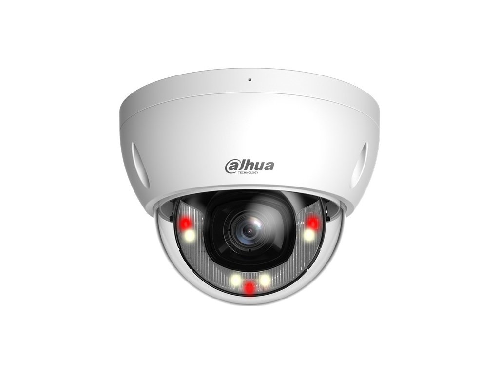8 Mpx dome IP kamera, exteriérová, Day/Night, Smart IR LED a WL LED prísvit s dosvitom 30 m, 1 /2.7" 8 Megapixel CMOS, rozlíšenie 3840 x 2160 px @ 1-20 fps, 2688-1520 px @ 1-25/30 fps, citlivosť 0,008 lx @ F1.6, objektív 2,8 mm, uhol záberu H: 110°, V: 58°, D: 132°; AWB, BLC, HLC, WDR 120dB, 3DNR, kompresia H.265 / H.264 / H.264H / H.264B / MJPEG (Sub Stream), podpora Smart codec, ONVIF kompatibilné, RTMP; inteligentné funkcie: IVS (perimeter protection), Smart search, SMD; napájanie 12 V DC / PoE (802.3af), spotreba max.: 8,3 W, pracovná teplota od -40 °C do +60 °C, IP 67, IK10, rozmery 81,0 x ø109,9 mm, hmotnosť 0,35 kg