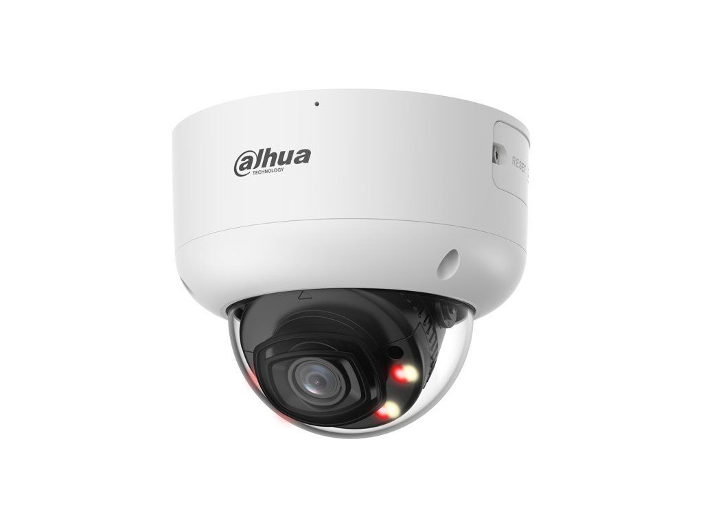 4 Mpx Dome IP kamera, exteriérová, Day/Night , IR 60m, WL 50m, 1/1.8 " 4 Megapixel CMOS, rozlíšenie 2688 x 1520 px @ 1-25/30 fps, citlivosť 0,0004 lx @F1.0, objektív 2,8 mm, uhol záberu H: 111°, V: 60°, D: 135°; AWB, AI-ISP, BLC, HLC, WDR 140dB, AGC, ROI, 3DNR, SSA, Defog, LDC, WizColor; kompresia H.265 / H.264 / H.264H / H.264B / MJPEG (Sub Stream), RTMP, podpora Smart a AI Codekov, ONVIF kompatibilné; inteligentné funkcie: IVS (Perimeter Protection), Large AI model (Xinghan), SMD 4.0, AcuPick, Face Detection, People Counting, Queue Management, Heat Map, Video Metadata, Smart Search; Aktívne odstrašenie; RJ-45, zabudovaný mikrofón a reproduktor, micro SD karta max. 1TB, alarm I/O 1/1, audio I/O 1/1, 1x RS-485, 1x 12 VDC output, napájanie 12VDC / PoE+ (802.3at) / ePoE, Dual Power Backup, spotreba max. 17,5W, pracovná teplota od -40 °C do +60 °C, IP 67, IK10 rozmery 105,5 mm x ø 126,0 mm, hmotnosť 0,73 kg, bielá verzia