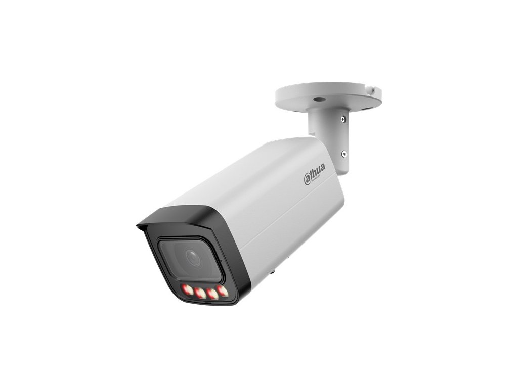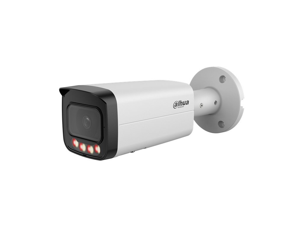 12 Mpx bullet IP kamera, exteriérová, Day/Night, IR L a WL prísvit s dosvitom 30 m, 1/2,5 " 12Megapixel CMOS, rozlíšenie 4480 × 2512 px @ (1–15 fps), 3072 × 1728 px @ (1–25/30 fps), citlivosť 0,008 lx pri F1.6, objektív 2,8 mm, uhol záberu H: 112°, V: 58°, D: 136°; AWB, BLC, HLC, DWDR, 3DNR, kompresia H.265 / H.264 / H.264H / H.264B / MJPEG (Sub Stream), podpora Smart codec, ONVIF kompatibilné, RTMP; inteligentné funkcie: IVS (perimeter protection), Smart search, SMD; Alarm I/O 1/1, Audio RCA I/O 1/1, napájanie 12 V DC / PoE (802.3af), spotreba max.: 10,1 W, pracovná teplota od -40 °C do +60 °C, IP 67, rozmery 238,5 x 90,7 x 90,7 mm, hmotnosť 0,72 kg.